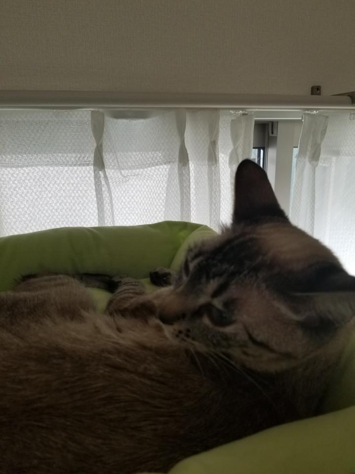 窓には近付かない、風呂場もキッチンも入らない。しつけされているなぁ。