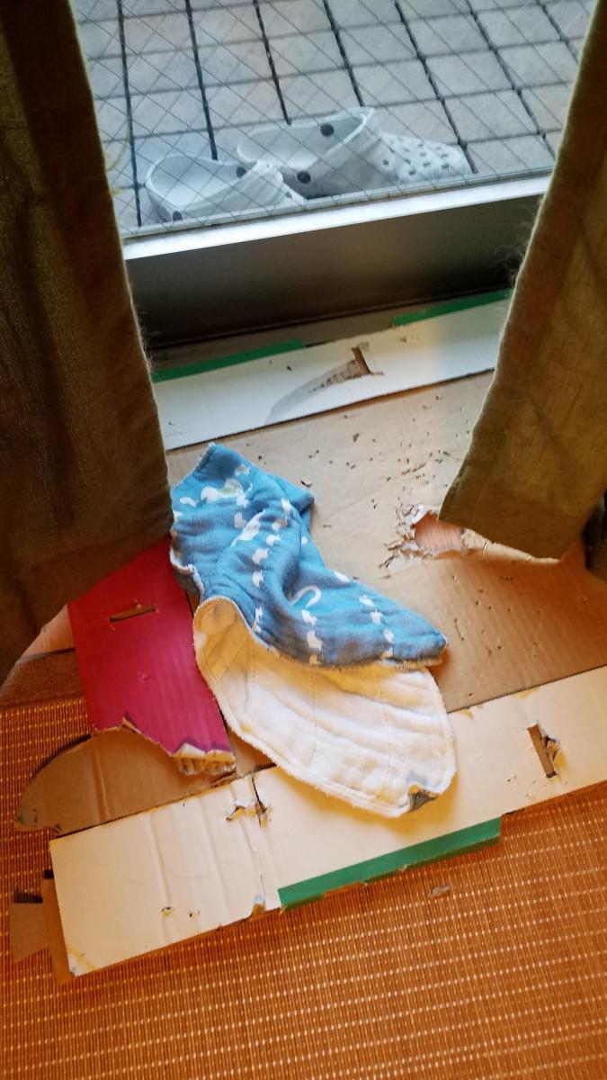 ダンボールの上のブルーの物体、何だかわかりますか???