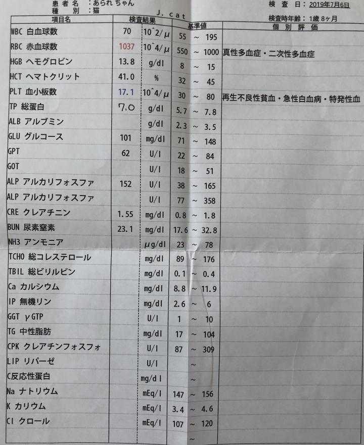 あと、2匹とも血小板数が少ないですがこれは機械で測定すると少なく出たりとバラつきが出るそうです。
