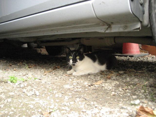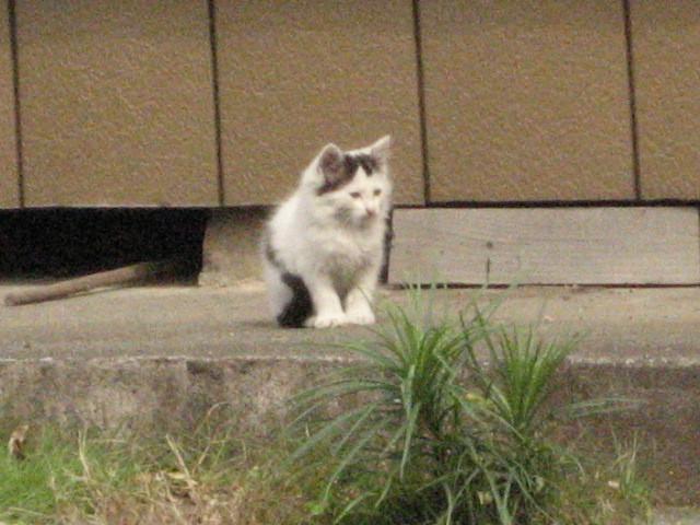 子猫ちゃんは私の車庫の後ろの、物がごちゃごちゃ積んであるところに住み着いています。
