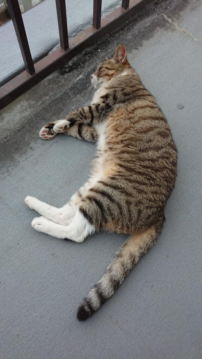 ベランダにゴロンと転がり、撫でて~とアピールします。