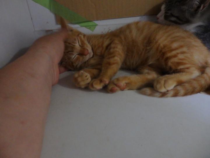 ちゃとら君、ペロペロ。カリカリも少したべました。
