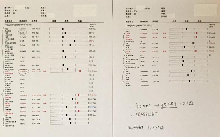 秋ちゃんもオレンジ同様、腎臓の数値は年相応。