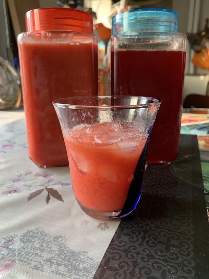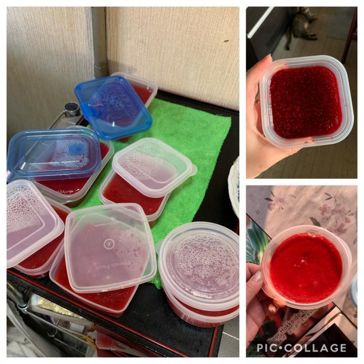 今回はジャムとジュースにしてみた濃いのはラズベリー