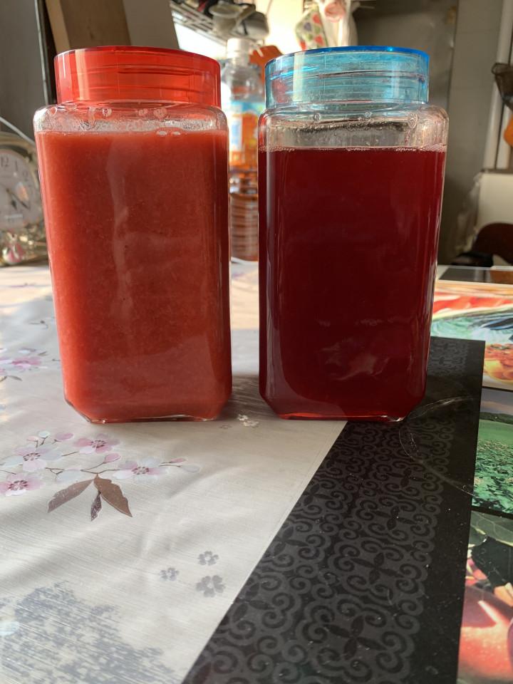 薄いピンクは果肉入りで砂糖なし