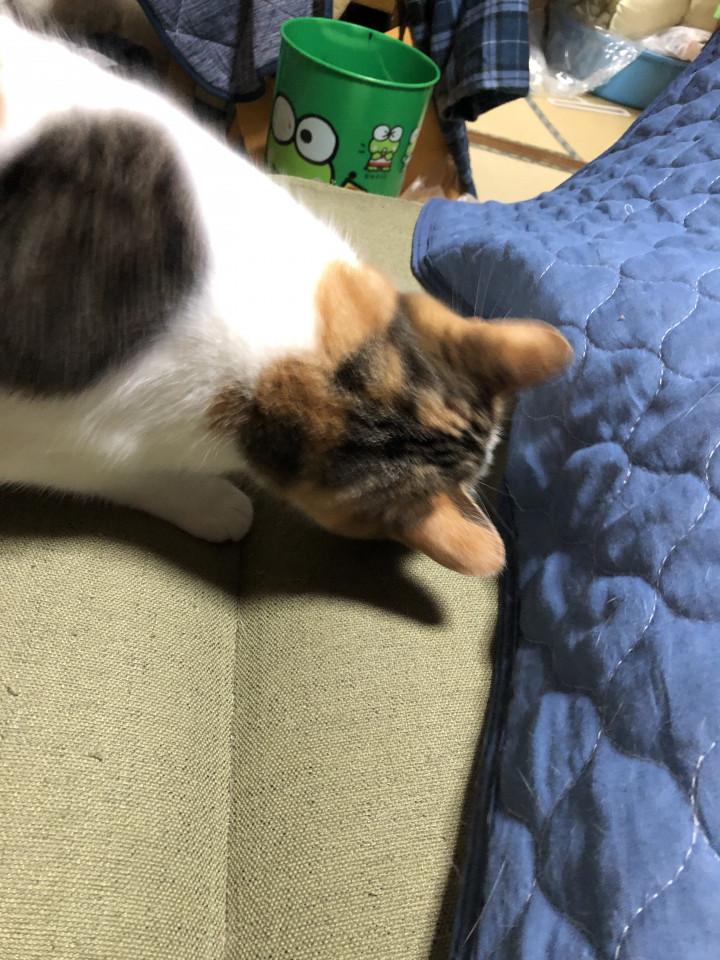 の兄弟を迎えて、仲良く暮らしています。これは、ひんやりシートの中に隠れたラムと遊んでいるところです。