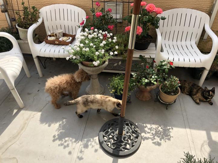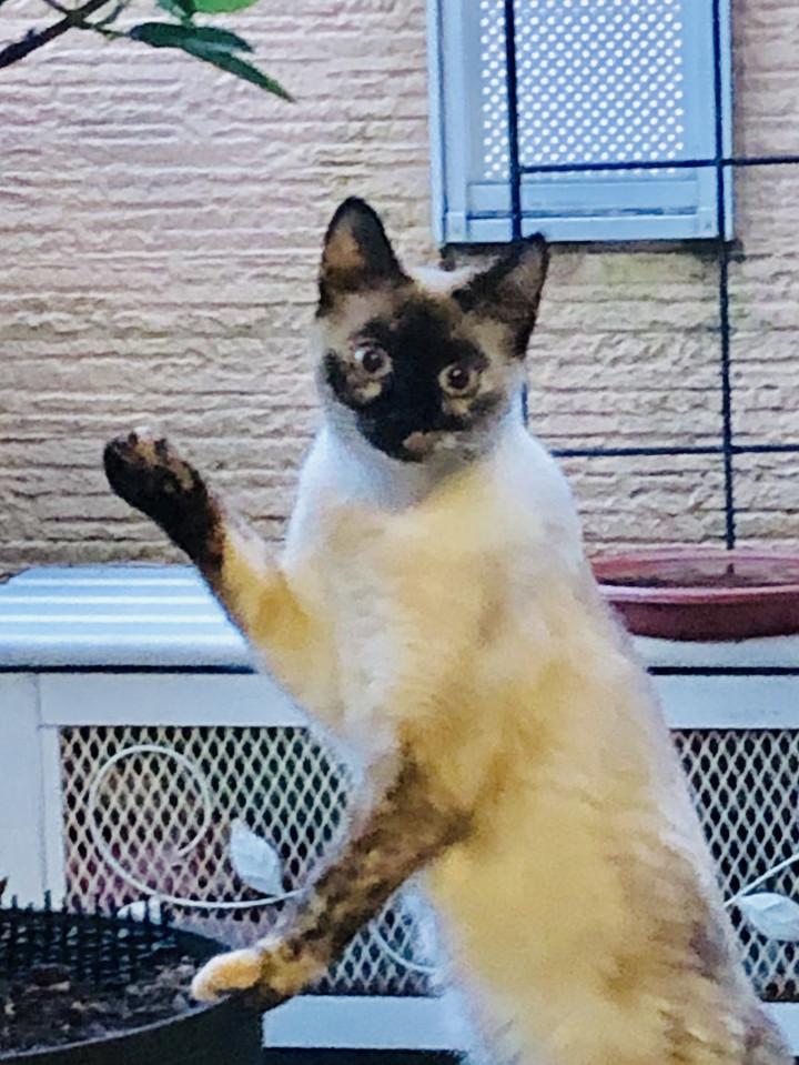 現在もうすぐ1歳になるエマちゃんと、トイプードルの老犬15歳二匹とも大人しく仲良しです。8月にハチとロクを迎えまして、朝方運動会を毎日しております。 エマちゃんが、猫語で、何やらニャ〜ニャ〜ウニャ...