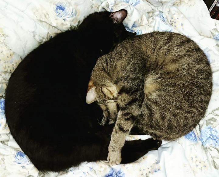 市内に自衛隊の演習場がある為、鳴り響く砲撃音を子守唄に平気で寝てるリオ&テオにゃんズも