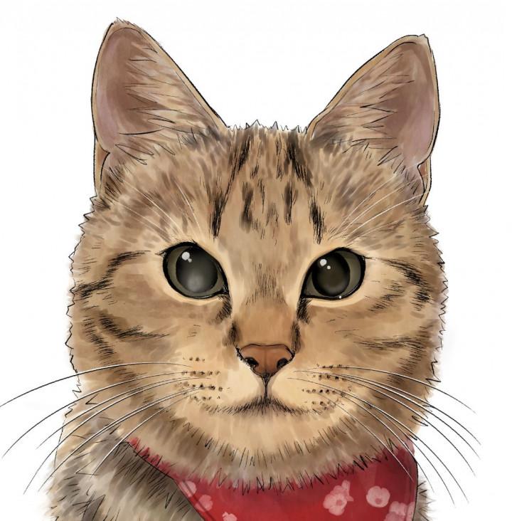猫のふわふわした毛、けっこう書くの大変…でも再現したいな…あ、どうせなら色もつけよう…とか欲が出て、結局カッチリ仕上げてしまった(^_^;)