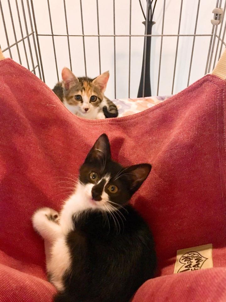 本日より猫ちゃんの預かりボランティアを始めました。とっ、、ても可愛い生後役2.5ケ月の三毛ちゃん、白黒ちゃん姉妹が夕方我が家にやって来ました。リリちゃんとまぁちゃんです。