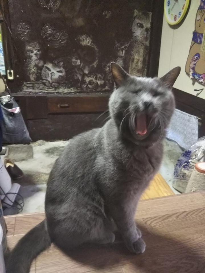 ようやく出てきて反省しているかと思って写真撮ったらあくびした