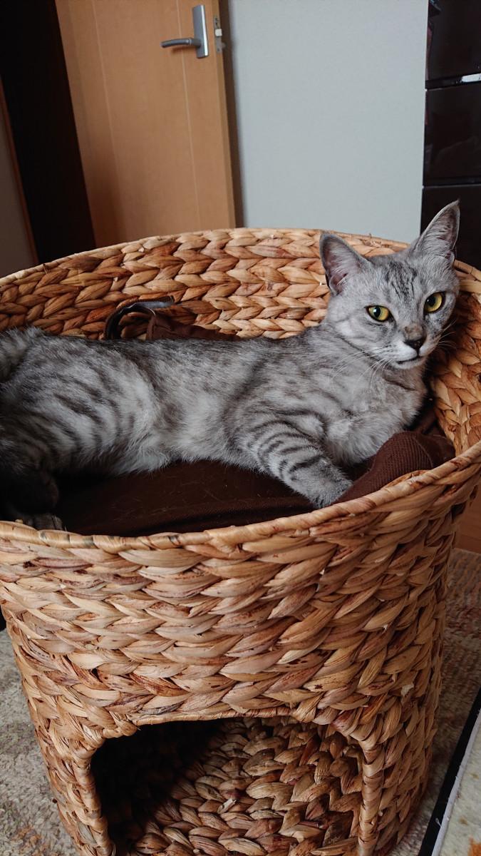 カゴのタイプで下半分はちぐらと合体している高さがあるものです。これは猫が喜びそう♪