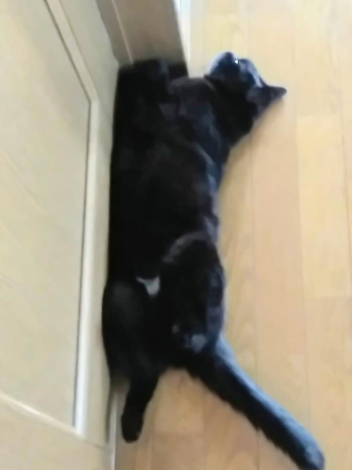 飼い主、ドアを閉める時は足で押してやりましたとさ