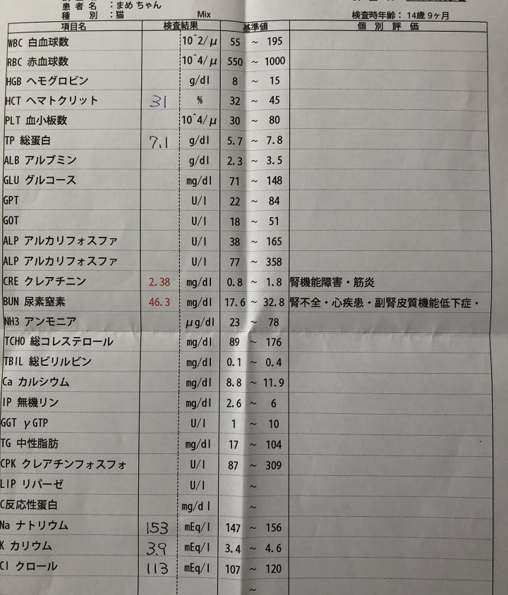 『まめ』は腎機能と電解質をみてもらって