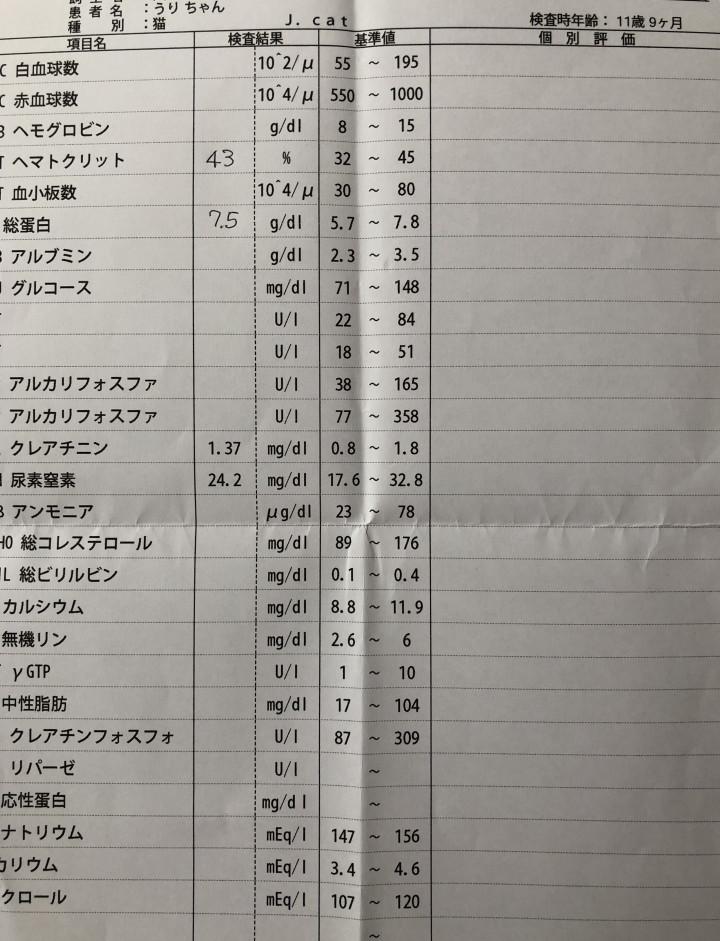 先月の数値は一時的なものかもしれないですが今年12歳の『うり』の腎臓はへたってきているはずなのでこれから注意しなきゃですね。