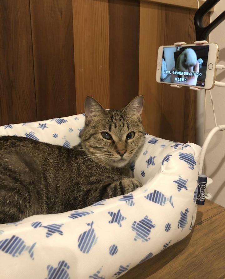 満足そうな顔をしたあと、また動画に夢中! ゴロゴロ…は続く。