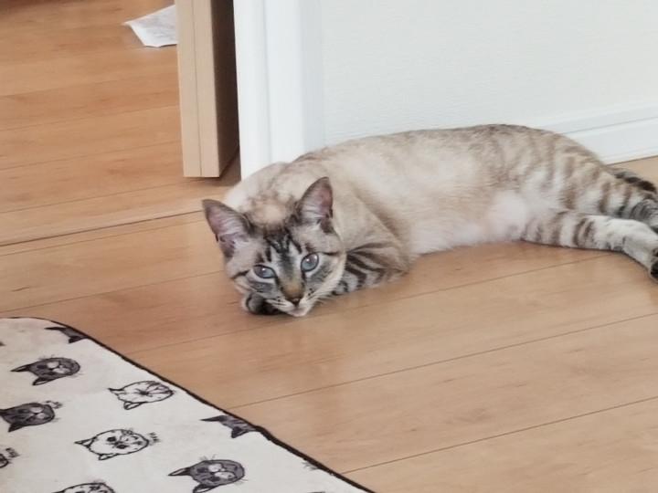 夜ケージに猫を入れていたけど、暑くて、自由にさせることにしまた。