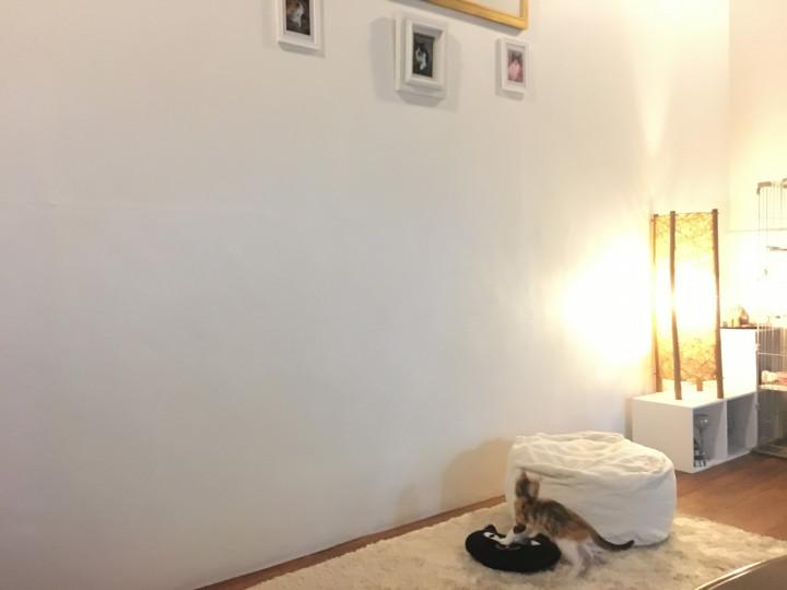 2匹ちゃんで追いかけっこする中、部屋中の写真立てはバタバタと倒され、、一先ずは大事なニャアくんの写真を避難!、、