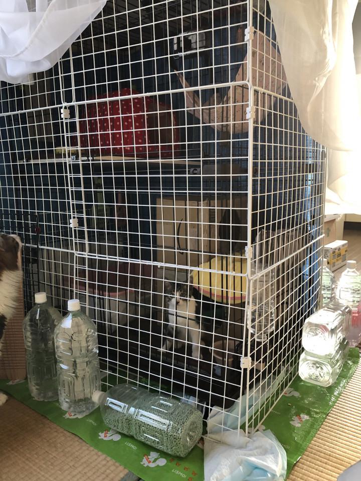 ケージの外側にはワイヤーネットで衝立作ってそれにレースのカーテンかけてました。