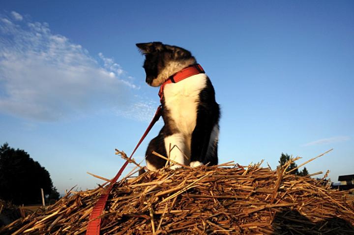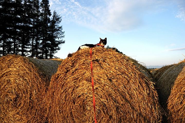 麦稈ロールは業者の方が牧草ロールを作る機械で夕方丸めて、畑のあちこちに固めておいてありました。