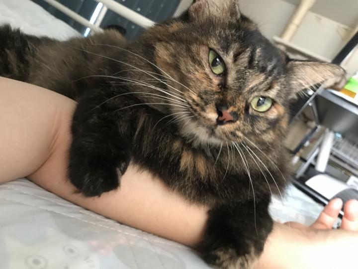 朝起きると、腕に巻きついているモフモフ…暑い…。