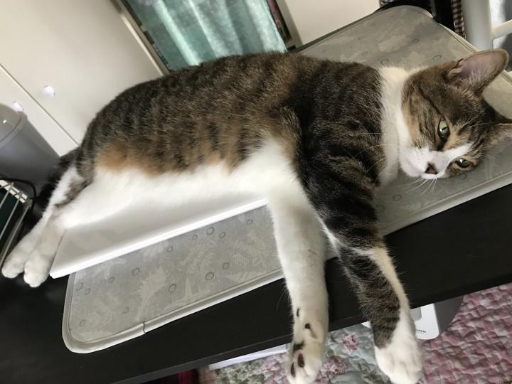 でも、涼しくなったら今度はケージの上のキャリーで寝始めるのよね。