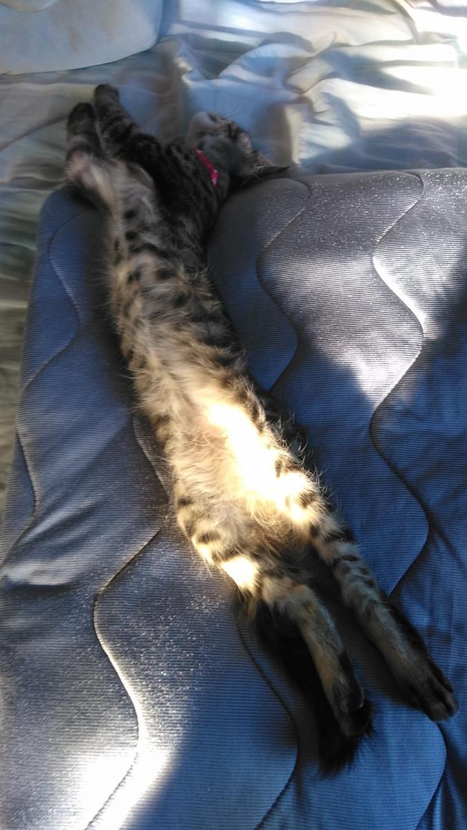 エアコンはつけてないですが、風があるので伸びて寝てます。