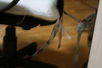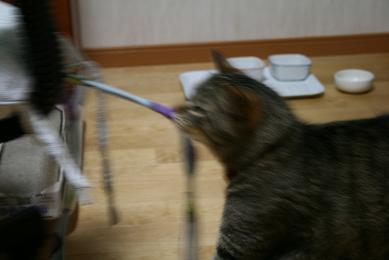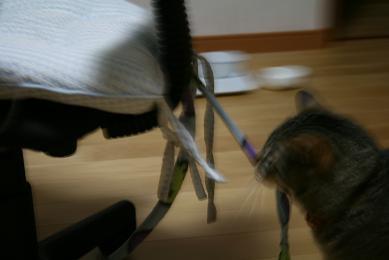 どこまで行くのか あずクンがどうするのか 見たかったけど、可哀想になって、この後すぐに椅子からジャラシを外してあげました^.^
