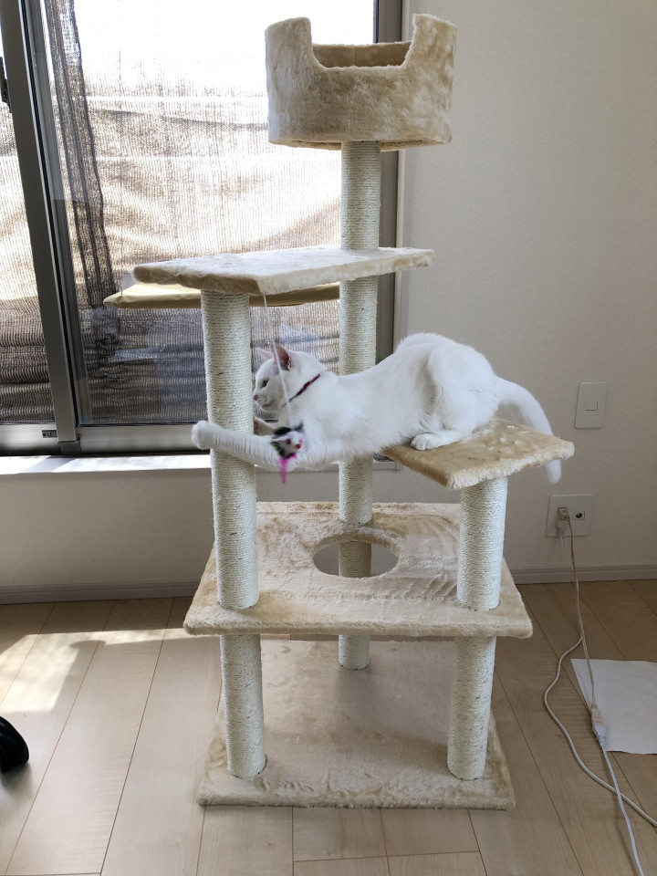キャットタワーの匂い3日はかかるらしいからしばらくは我慢だな〜(*´ー`*)