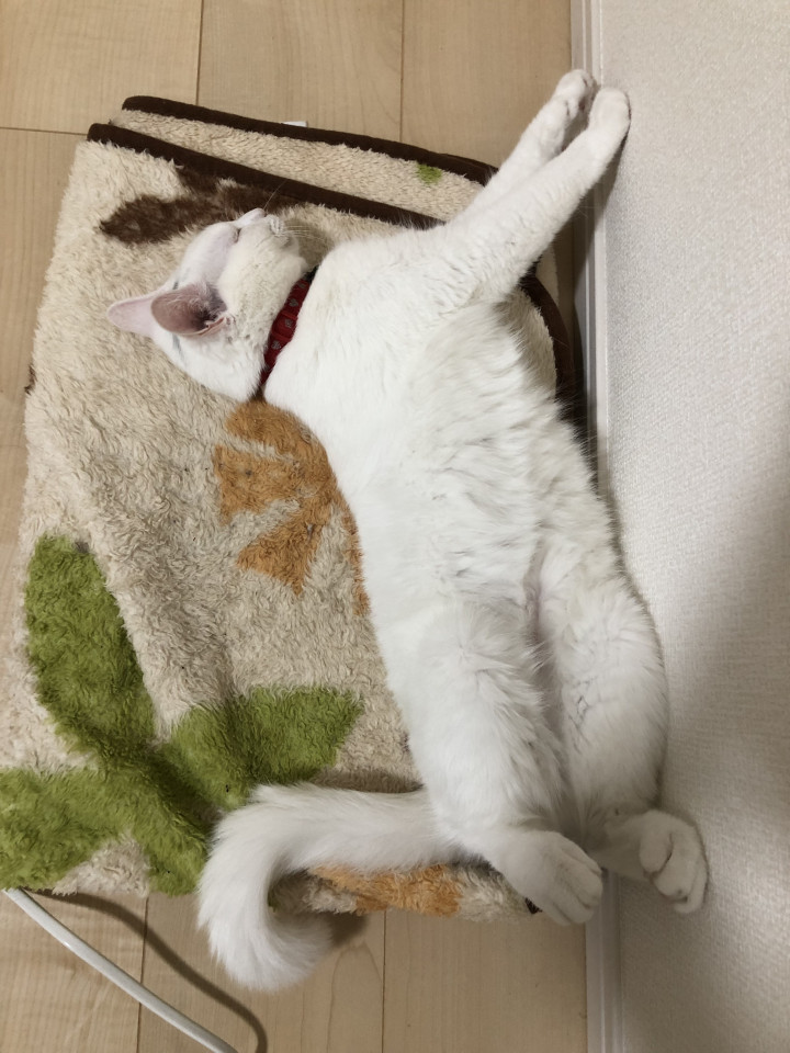 なんか踊ってる見たいに見える寝相のシロ子笑ヽ(*´∀`)