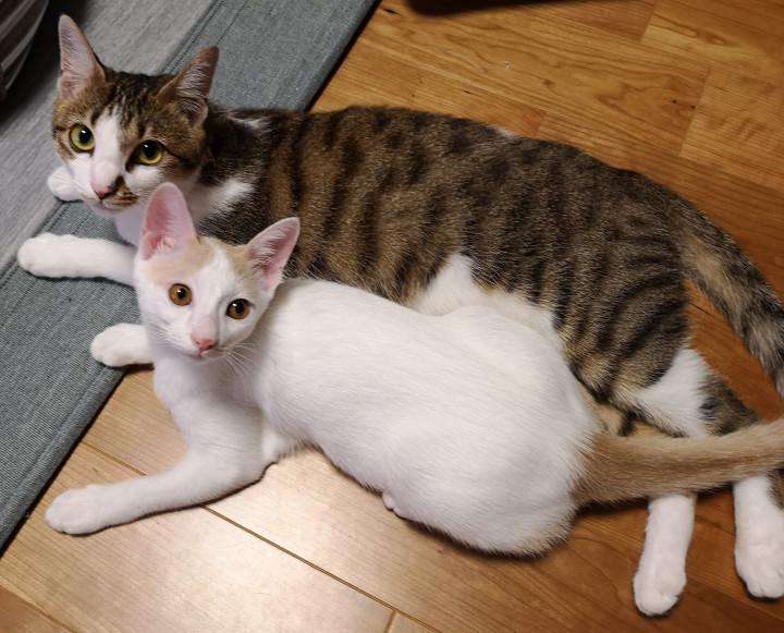 最初に新入りキーちゃん来たときは、警戒しまくりシャーだったけど今ではこんな感じです