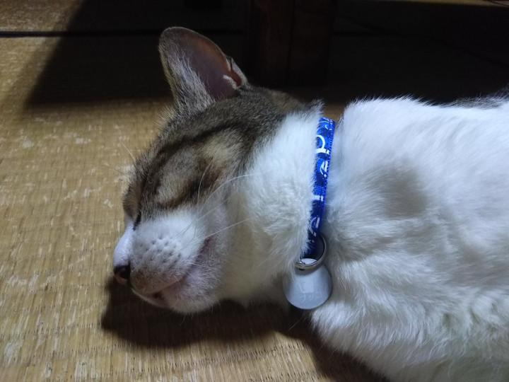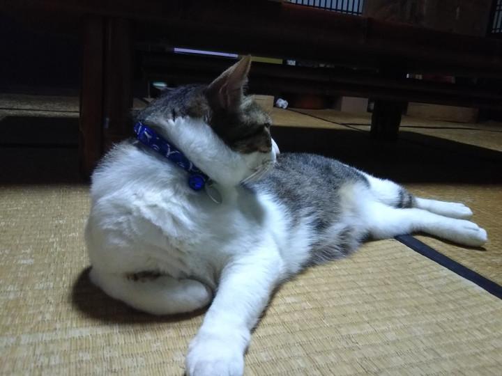 涼しげな青い唐草模様の首輪にしてみましたよ。