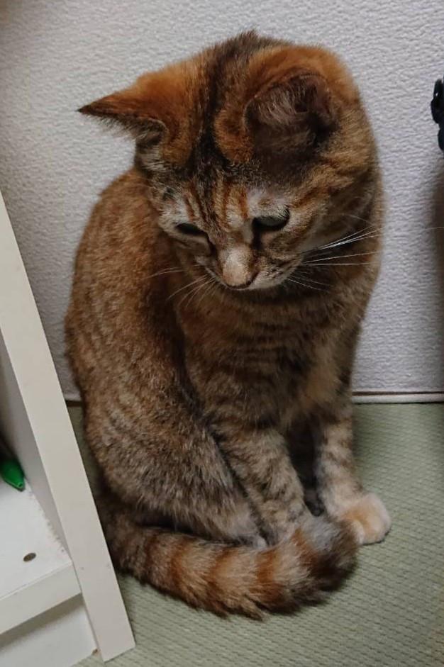 特徴:茶色のキジトラ。雑種。尻尾は長く、縞模様。人懐っこく優しい性格で、初めましての人の膝の上で寝てしまうこともあります。肉球がぶち模様。首輪等のアクセサリーは無し。声は高めですが、あまり鳴かない子です。保護センターから迎え入れ、その後一度も外に出たことがありません。