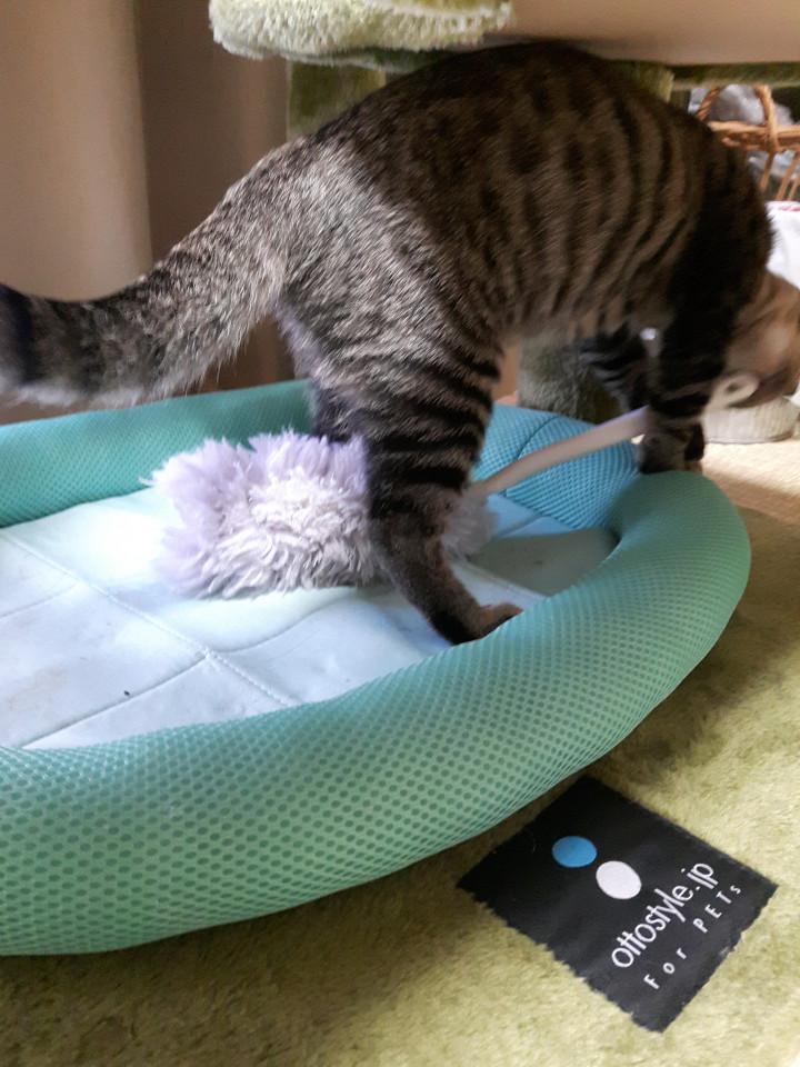 しかし、もなか、大好きなちびたのベッドによく物を持ち込みます