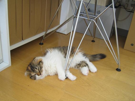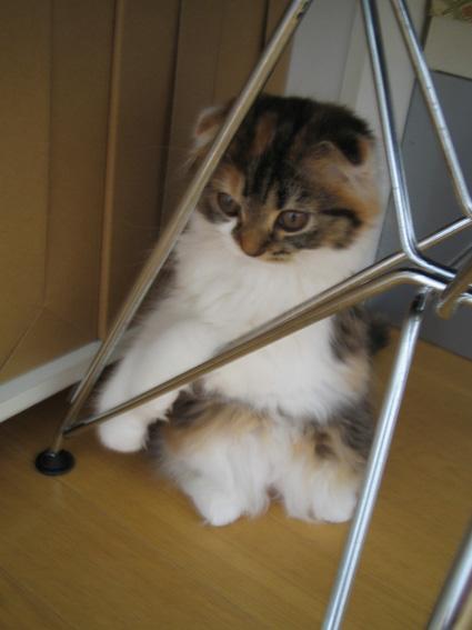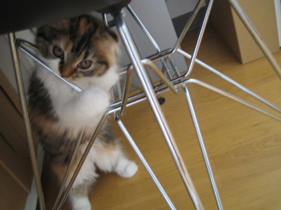 こんな風に、イスの足に絡み付いていました。
