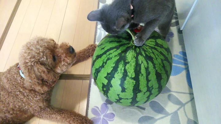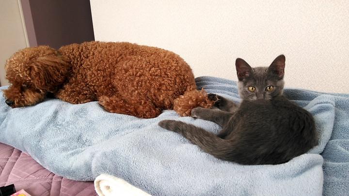 お兄ちゃんワンコのスイカを横取りすることなく、お昼寝タイム。