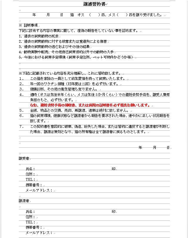 譲渡時にはこちらの契約書をかわします。