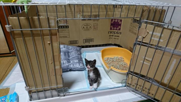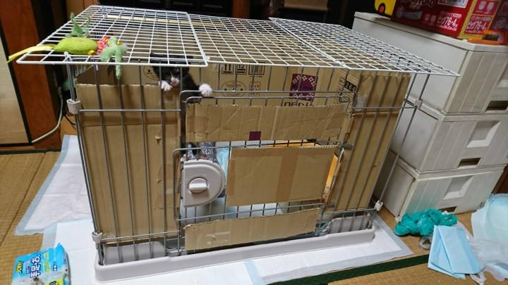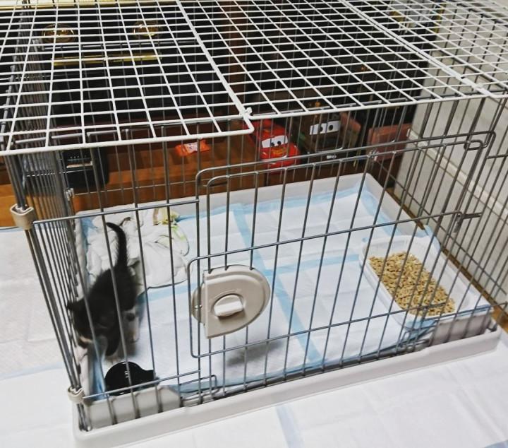 里親さんが決まるまでと作ってた仮のお家はもう狭くなったので、黒メスちゃんのためにワンコ用のケージをお譲り頂きました。