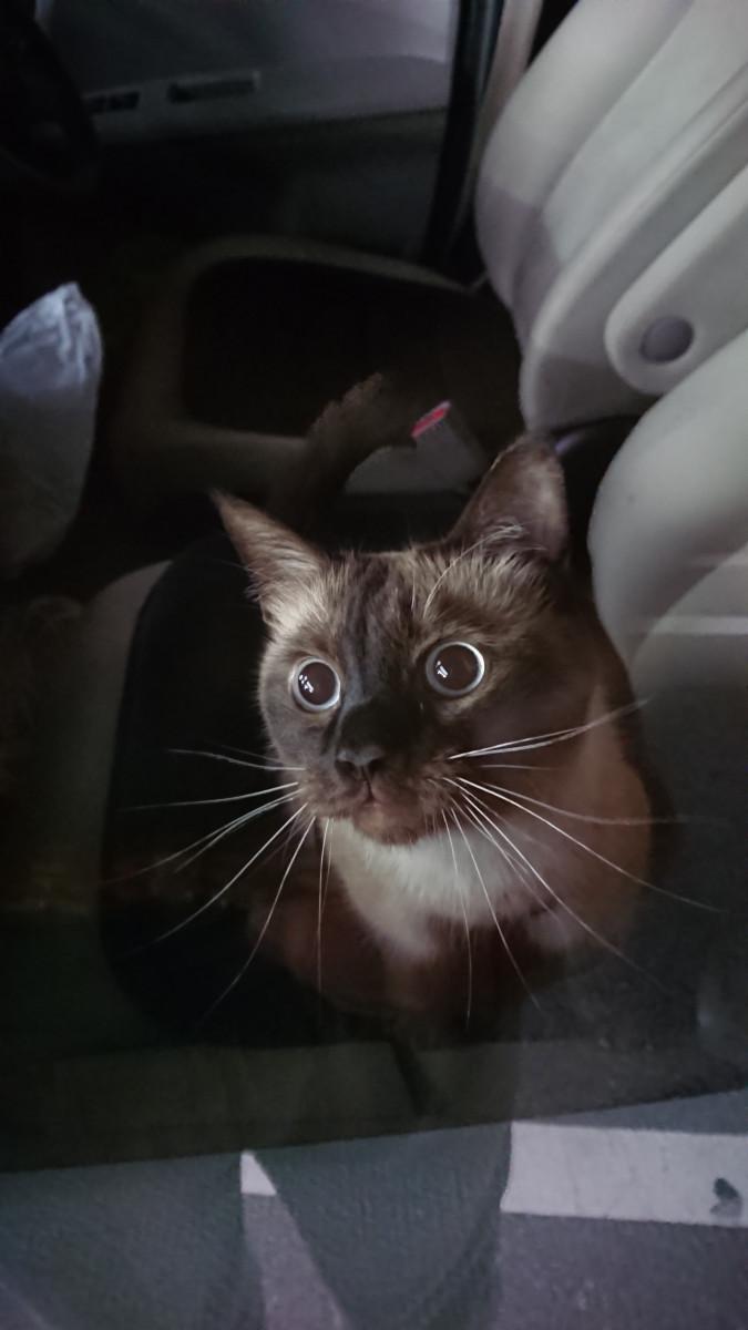 車内に置いてくなぁ❗と、ばかりの顔ですが…店内は無理です。
