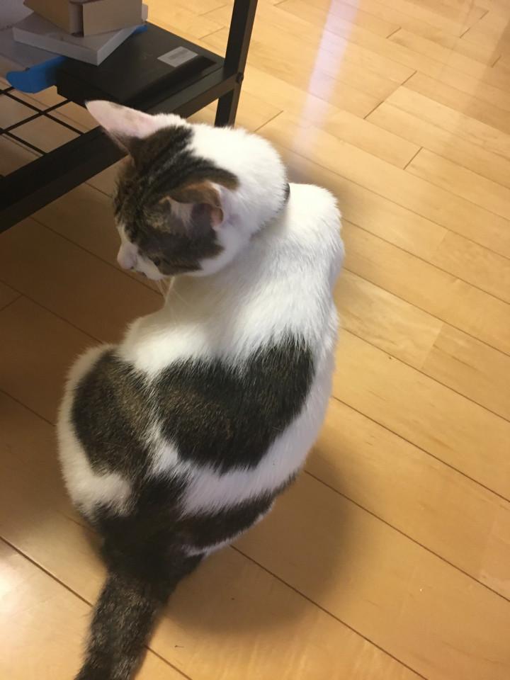 小さい時は背中の毛の模様が小さかったのですが大きくなって、大きくなって、大きなハートマークが出てきました。