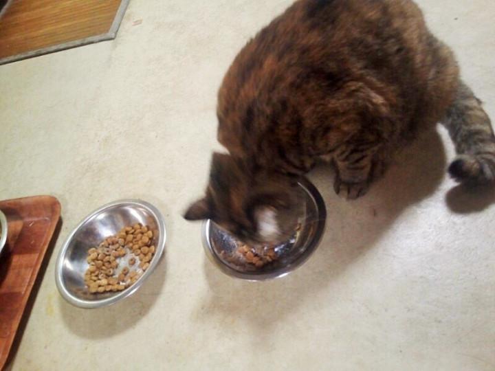 猫って腹八分目位で止めて、あとは少しずつ食べにくる習性…とか