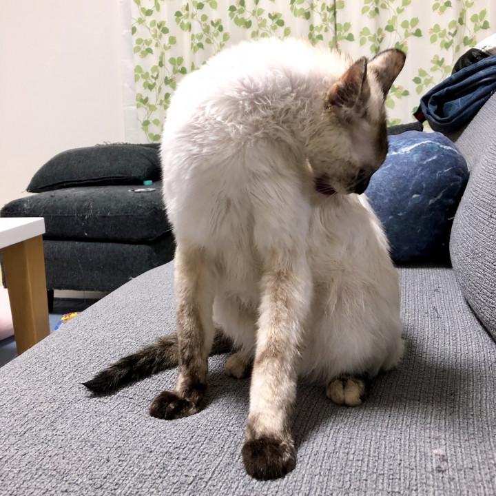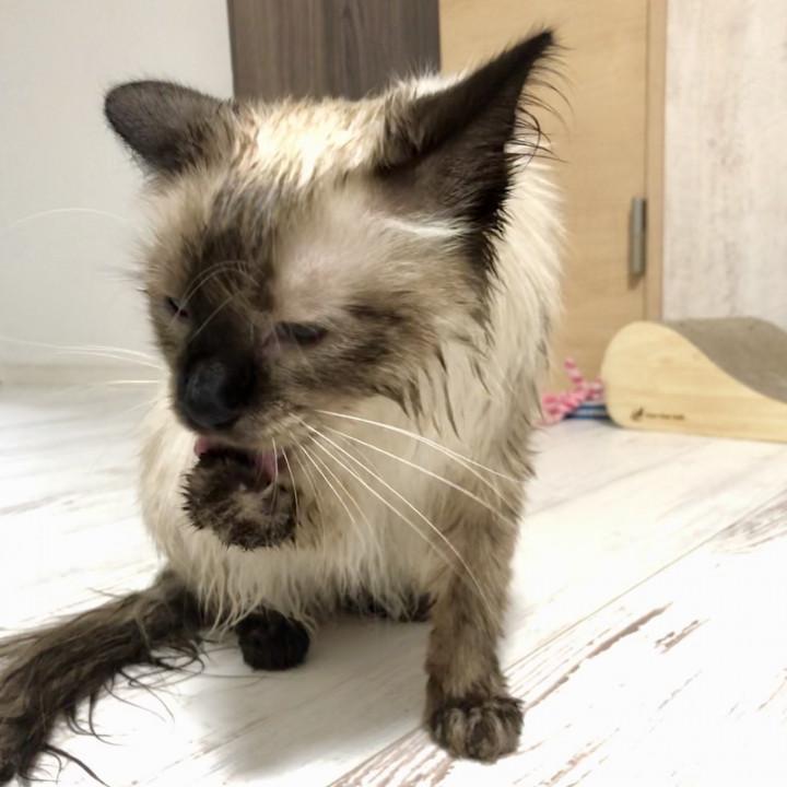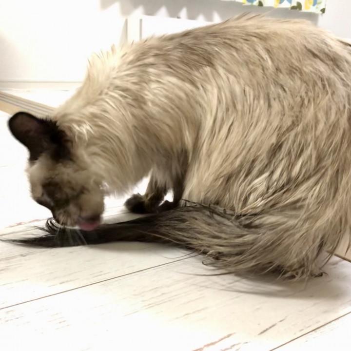 お風呂上がり後の雷牙の尻尾は普通の猫ちゃんのようでした😁