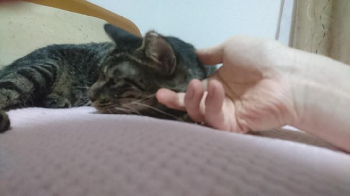 撫でられてますます眠くなっていく、くるみくん