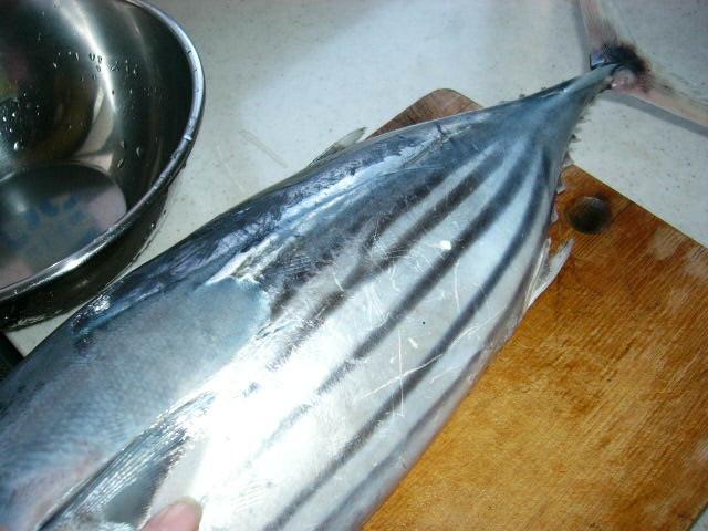 一本1200円だとか、彼女の母が買ってきたみたいで半分僕のところで食べてというので、なのでさばいてやることにしました。