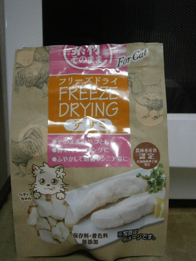ひとつはフリーズドライの鶏ササミ。 今までは削りササミをあげてたのですけど、ちょっとお高くて継続的には厳しい^^;ですが、 これは今までより半額以下で済むので買ってみました。