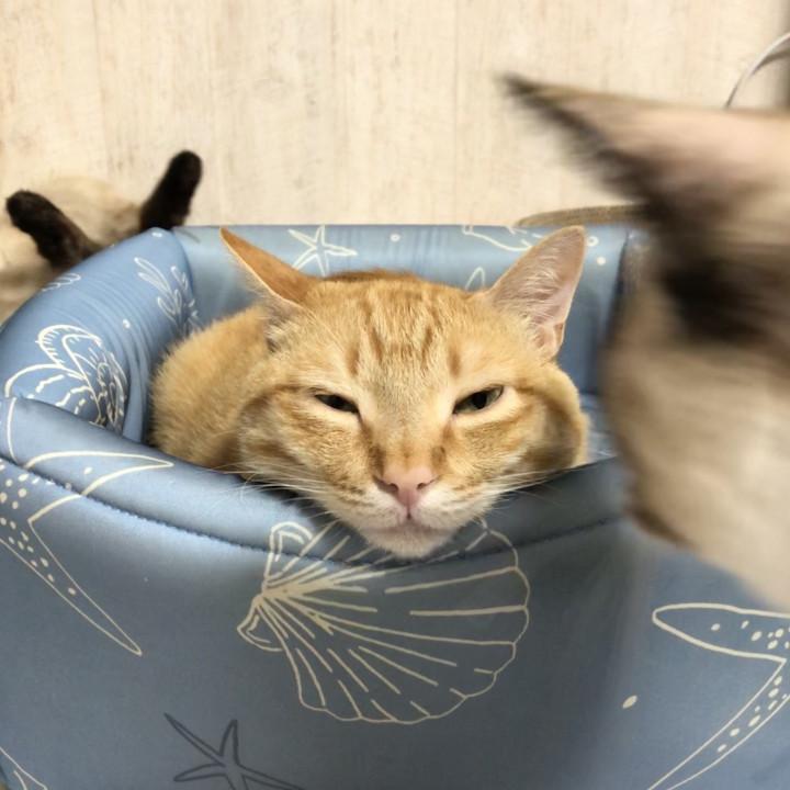 その雷牙は尻尾を毛繕いしようとして後ろでひっくり返っています🤣
