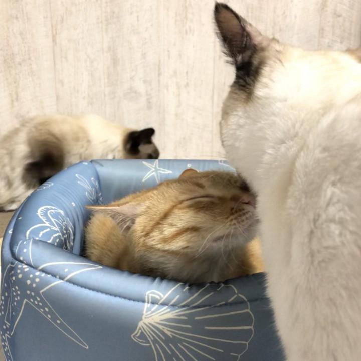 仕方なく毛繕いしてあげる風牙とズカズカと入り込んで行く雷牙