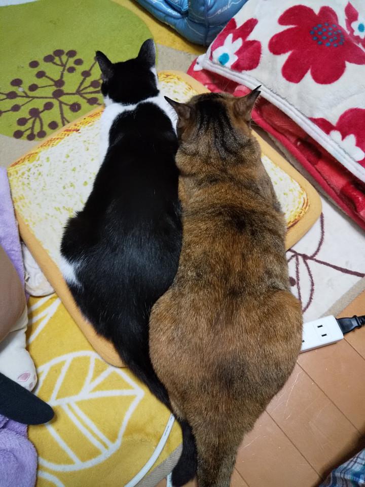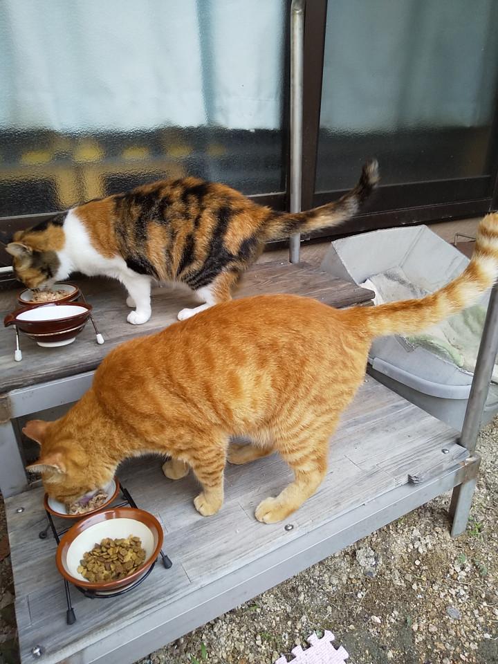 以前はチャイが飛びかかってウランが激怒という構図でしたが、最近はチャイがじゃれて飛びかかってもウランがどっしりして無反応の時なんかあって面白いです。お互いに思いやりのある挨拶をしている様子も見受けられ、外生活という事もあって殊更に微笑ましくかつ切ない気持ちです。家に入れる事を真剣に検討しています。