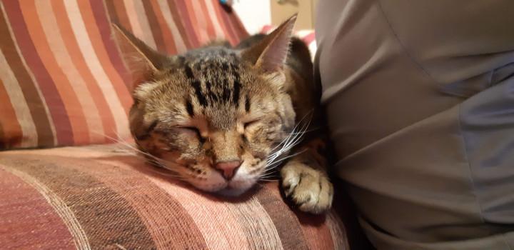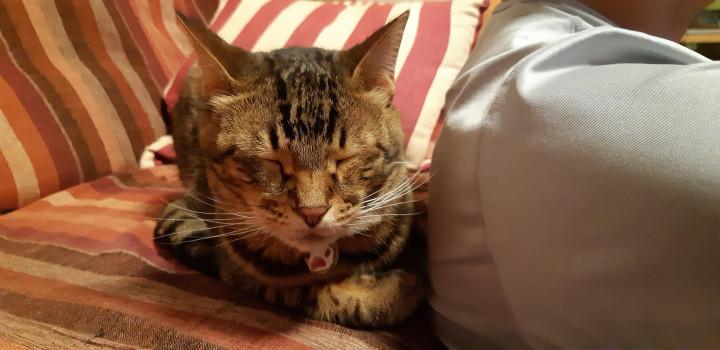 でも、この時だけは「何かちょうだい」じゃなく、おとさんの真後ろで寛いだままウトウト😴
