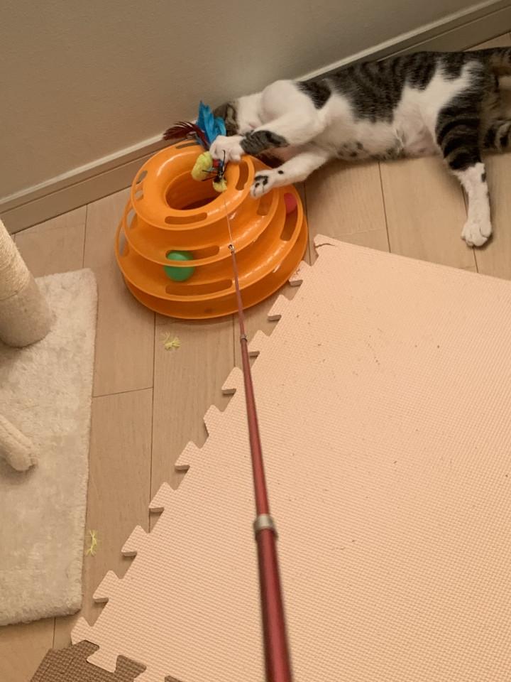 写真のオモチャの球は全部取り出して、転がして遊んでます。